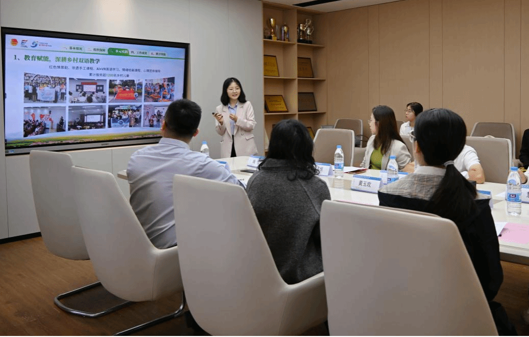 党委副书记许多恬介绍了师生依托专业优势开展的系列社会服务项目,重点分享了AI赋能中小学教学的教研案例,并表示希望以此为契机,探索与英德市中小学的合作路径,切实以成人短视频