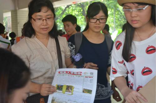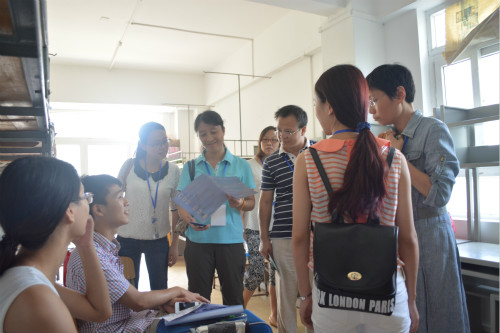 的领导老师则不时在场内外来回穿行,为报到手续出现困难的同学解决问题,统筹工作大局。